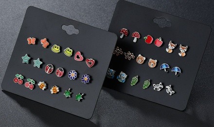Children's Gold Plated Brass Novelty Enamel Stud Earring Sets - 9 Pairs per Set