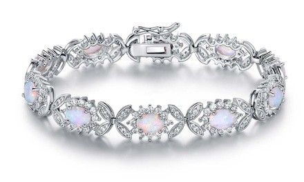 Peermont 18K White Gold Plated Fire Opal Butterfly Tennis Bracelet